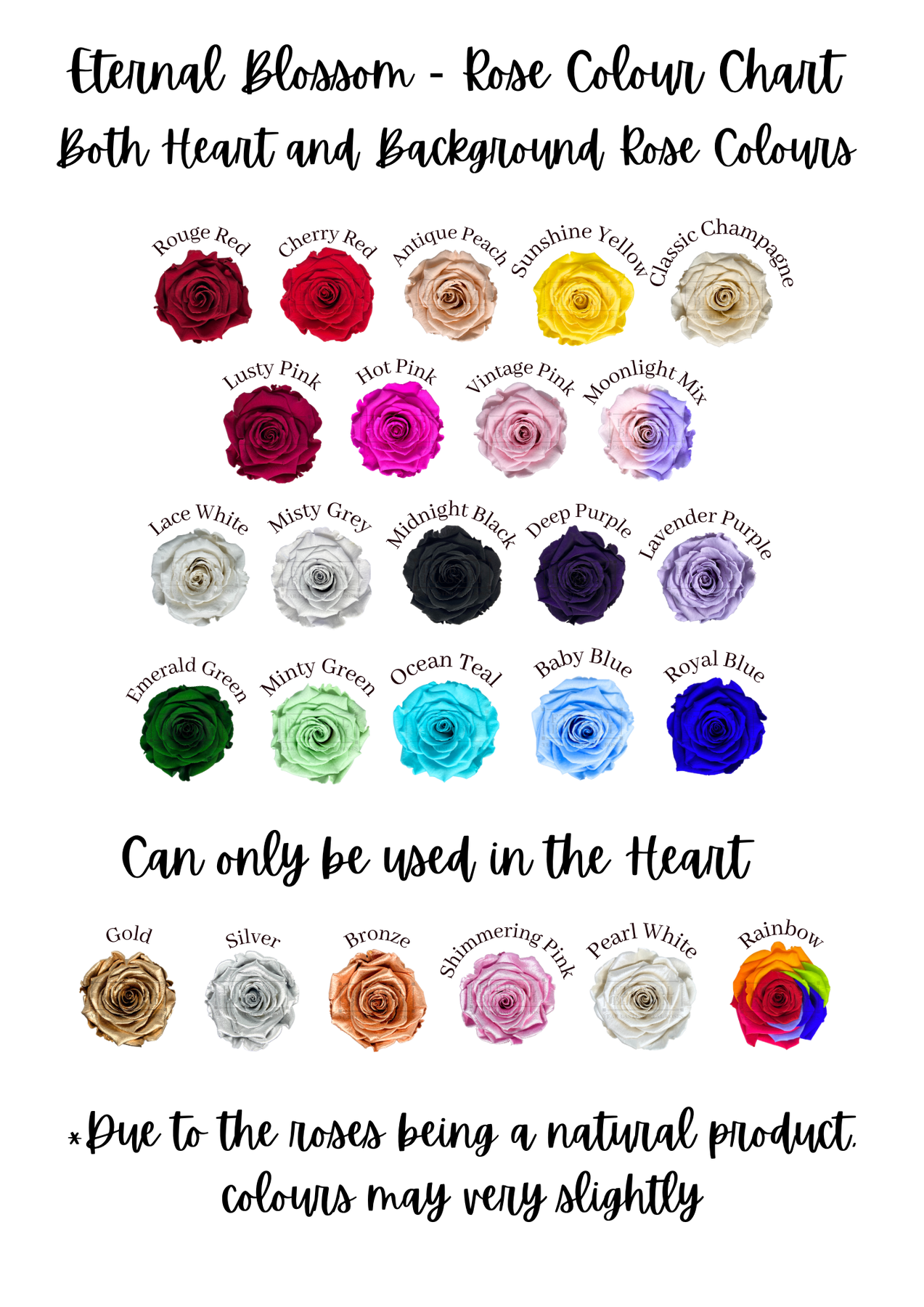 Having these additional infinity rose colour choices in your heart arrangement will only be available over the valentines period so make sure you get hold of yours before its too late!